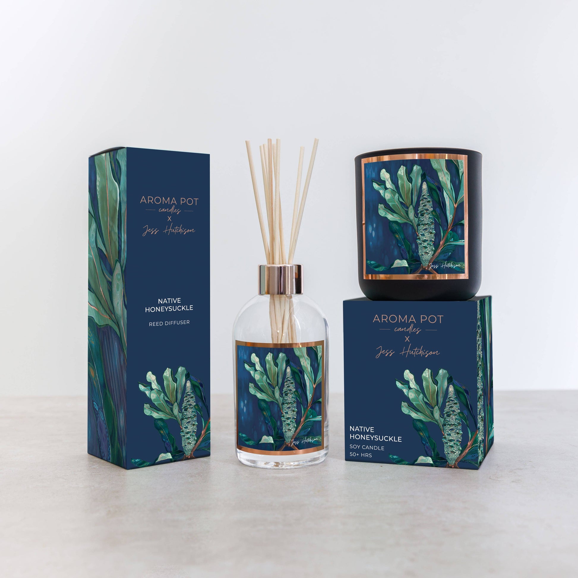 Our Australian artist soy candle features this striking banksia artwork by Australian artist Jess Hutchsion.